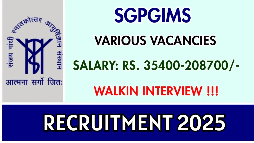 SGPGIMS Recruitment 2025: The official announcement for the hiring of several positions, including Senior Resident and PDF, has been made public by the Sanjay Gandhi Postgraduate Institute of Medical Sciences (SGPGIMS), located in Lucknow. Candidates can carefully read the notification and show up for the walk-in interview on the designated date if they are interested in these positions and meet all eligibility requirements. The goal of this hiring campaign is to fill 14 positions in total.